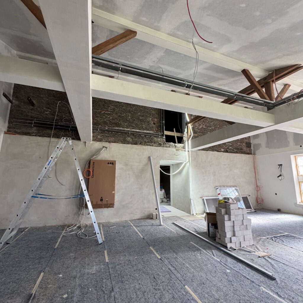 Seit bereits etwa 4 Monaten sanieren wir aktuell das Haus 48 des Kulturcampus Domäne Marienburg. Die ersten Gebäude auf dem Gelände wurden bereits 1346 erbaut. Heute gehört der Standort Domäne Marienburg zum Stiftungsvermögen der öffentlich-rechtlichen Stiftung Universität Hildesheim und ist Treffpunkt für Studierende und vor allem Spaziergänger der Kulturlandschaft Mittlere Innerste. Zudem ist die Domäne Marienburg beliebter Veranstaltungsort der Region. So wird jährlich die Sommernacht der Universität gefeiert.