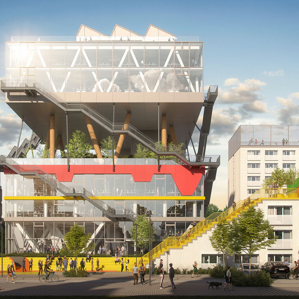 In einer mehrjährigen Umbaumaßnahme erwacht die Bauruine des ehemaligen niederländischen Expo-Pavillons auf dem Expo-Gelände in Hannover zu neuem Leben. Entstehen werden über 350 Mikroappartments, moderne Büroflächen, ein Parkhaus sowie mehrere frei zugängliche Flächen. Ein besonderes Highlight: Im 3. Obergeschossliegt ein rund 14 Meter hoher Hochgarten, der den Charakter des Hauses prägt.